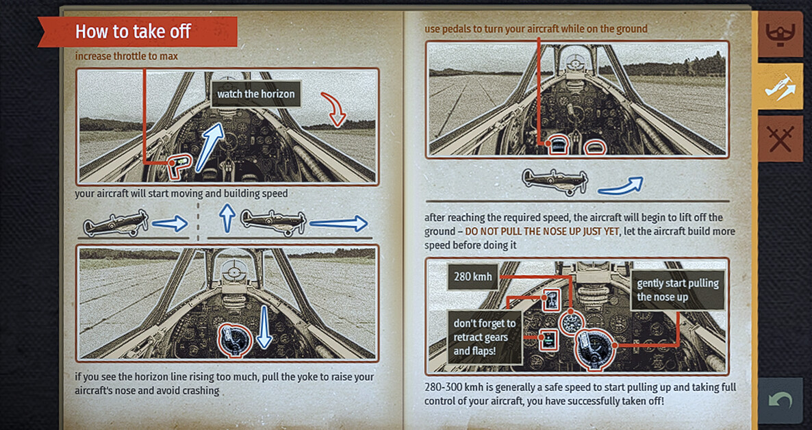 You can learn to fly in the test flight, and there’s a flight principles manual that you can find on the pilot’s tablet next to the game mode selection button.