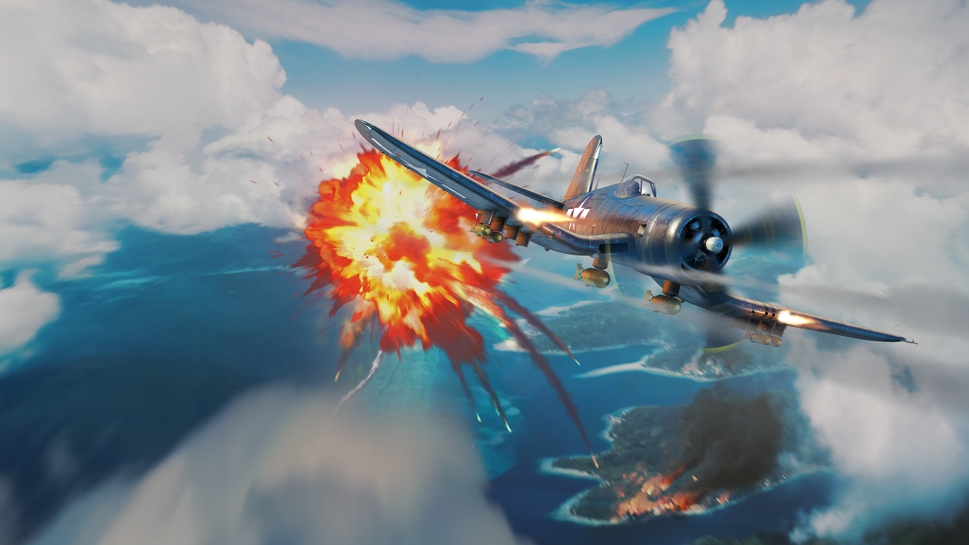 The F4U-4 is capable of reaching a maximum speed of over 700 km/h at an altitude of 9,000 meters, making it one of the fastest planes in the game. The fighter is armed with six 12.7-mm Browning machine guns, and 100, 250, 500, and 1000-pound bombs, as well as HVAR rockets.
